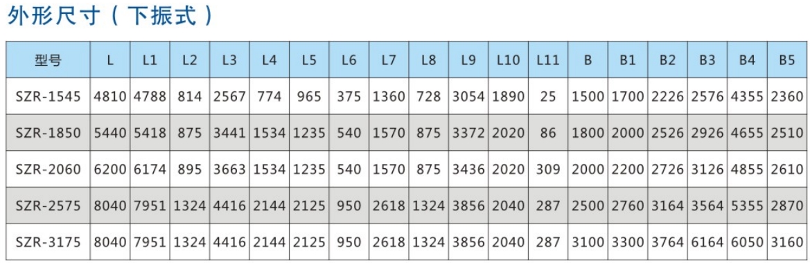 SZR系列熱礦振動篩主要用于冶金行業(yè)溫度在600-800°℃的中、小粒級燒結(jié)礦的分級,并完成向冷卻設(shè)備的均勻布料作業(yè)。