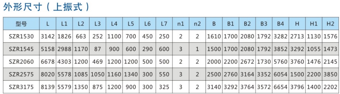 SZR系列熱礦振動篩均為座式安裝。采用雙軸激振器,電機不參振;由兩臺電機外拖動激振器作反向自同步旋轉(zhuǎn),使篩體沿直線方向作周期性往復(fù)運動,從而達到篩分目的。